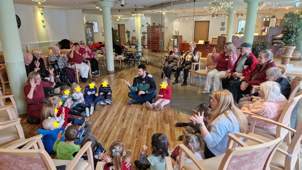 Ein ganz besonderer Vormittag sorgte kürzlich für strahlende Gesichter im Altenheim: Die Kinder des Kindergartens „Märchenwald“, Gruppe Rapunzel, waren zu Besuch und brachten jede Menge Leben, Musik und gute Laune mit. Schon beim Eintreffen war die Freude auf beiden Seiten groß. Mit bunten Liedern und fröhlichen Mitmachliedern luden die Kinder die Seniorinnen und Senioren zum Mitsingen, Mitklatschen und Bewegen ein. Viele Bewohner ließen sich gerne anstecken, sangen bekannte Melodien mit und genossen die lebhafte Atmosphäre.
