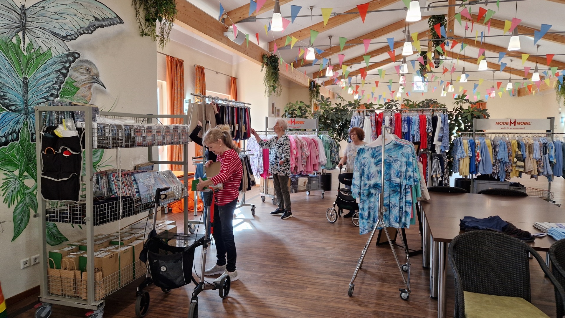 Der mobile Modeverkauf von „Mode Mobil“ war zu Gast und verwandelte unseren Festsaal in eine kleine, gemütliche Boutique.