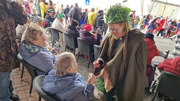 Die Höhepunkte des Umzugs waren für viele die Kamelle, die von den Wagen geworfen wurden. Mit leuchtenden Augen und voller Begeisterung fingen die Senioren die bunten Bonbons und Süßigkeiten.