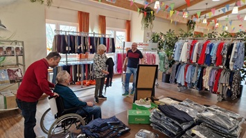 Kleiderständer voller bunter Blusen, bequemer Hosen, schicker Jacken und weicher Pullover luden zum Stöbern ein. Viele Bewohnerinnen und Bewohner nutzten die Gelegenheit, nach Herzenslust zu schauen, zu fühlen und vor allem: anzuprobieren. Mit viel Geduld und einem Lächeln unterstützte das Team von Mode Mobil bei der Auswahl und sorgte dafür, dass sich jede und jeder wohlfühlte.