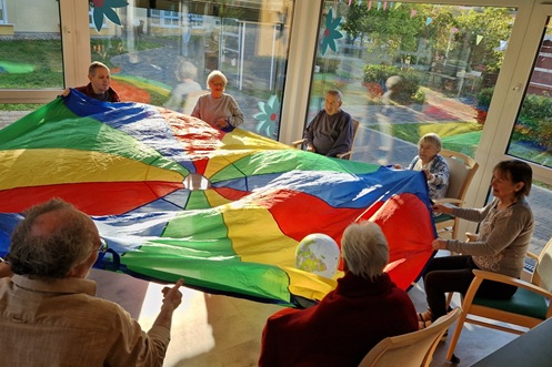 Aktivierende Angebote: Gedächtnistraining, Musik, Bewegungsübungen und kreative Aktivitäten fördern die Lebensfreude und erhalten wichtige Alltagskompetenzen. Zudem bieten wir ein speziell entwickeltes Malatelier.